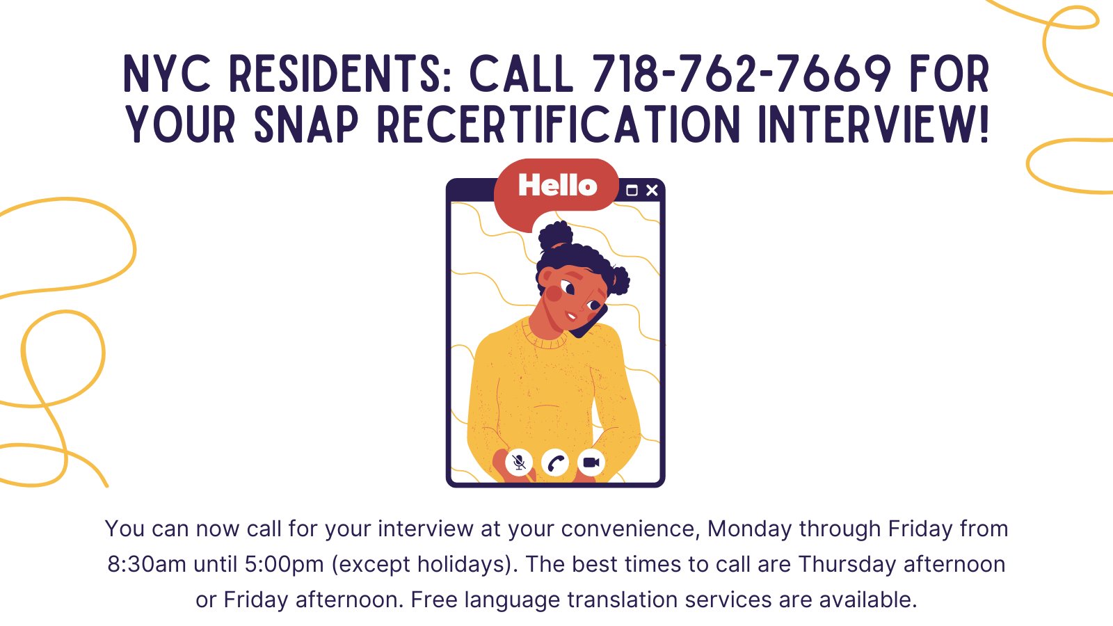 Usda Hunger On Twitter If You Live In Nyc You Now Have The Option To Complete Your Snap Recertification Interview At Your Convenience Call 718 762 7669 Anytime Between 8 30 5 00pm From Monday To Friday